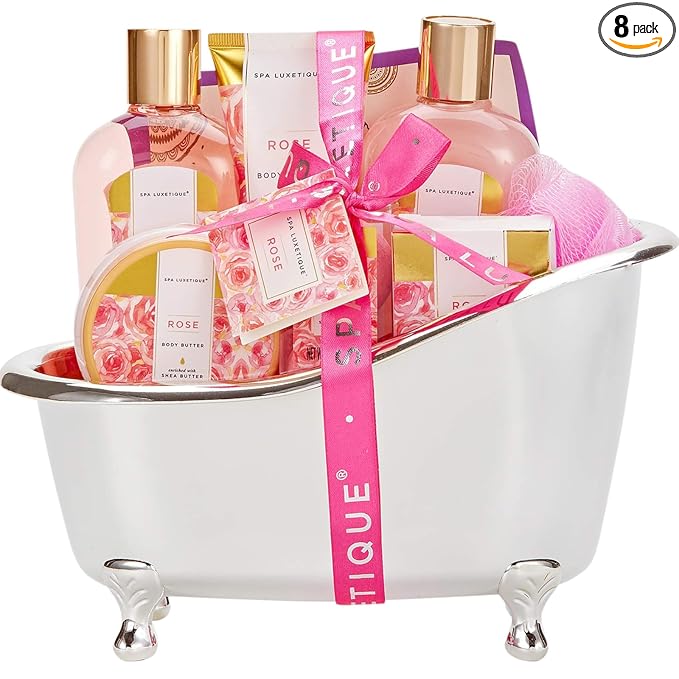spa luxetique Set de regalo para mujeres, juegos de baño para mujer, 8 cestas de spa de rosas, incluye baño de burbujas, gel de ducha, loción corporal, regalos de spa de cumpleaños, regalos del día de
